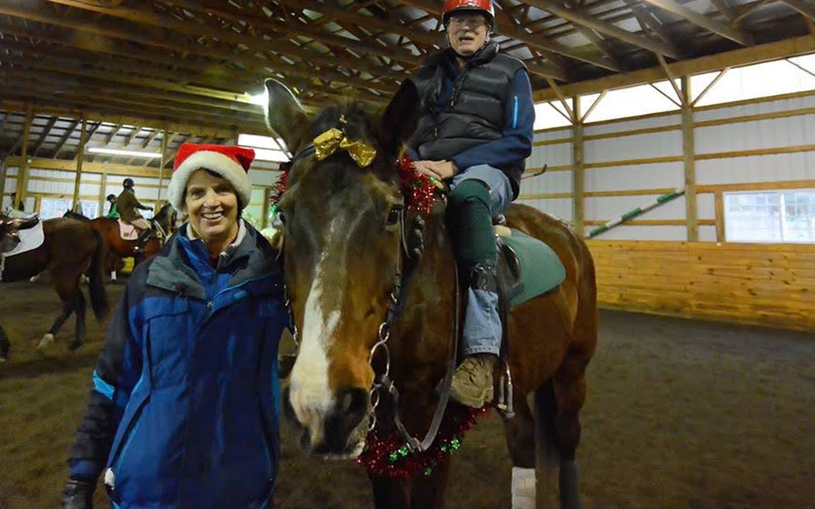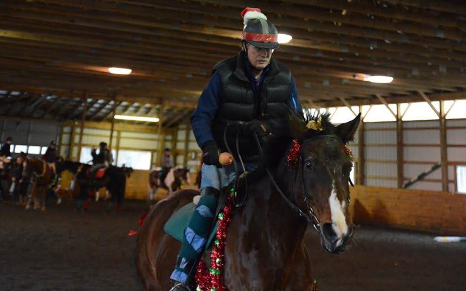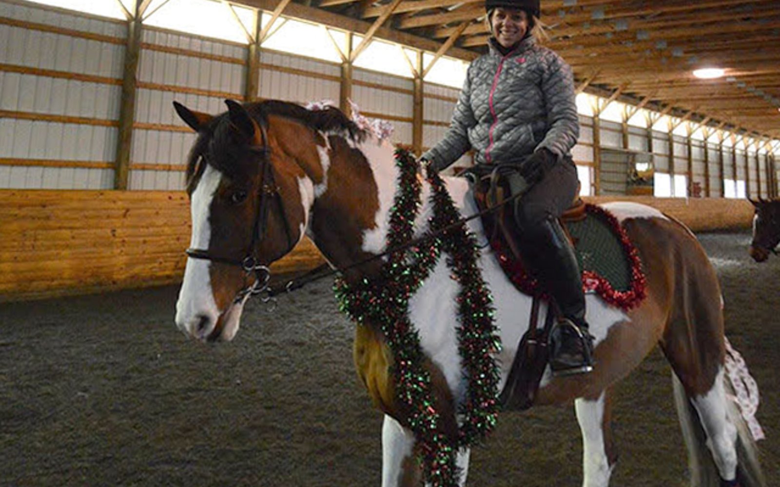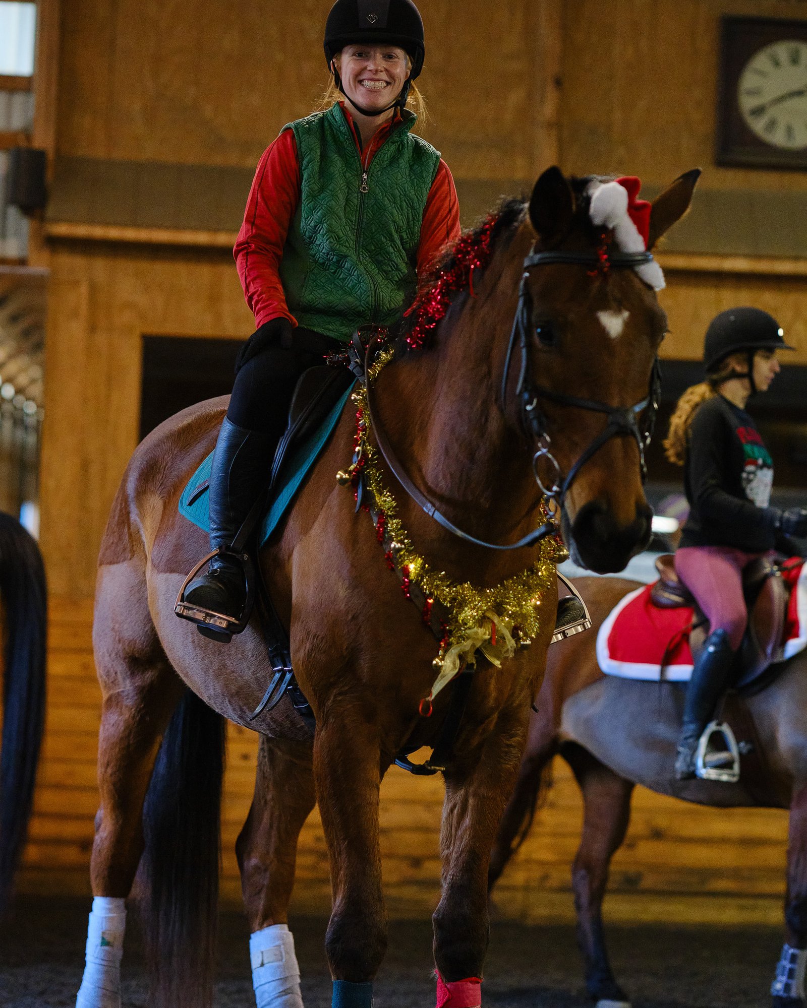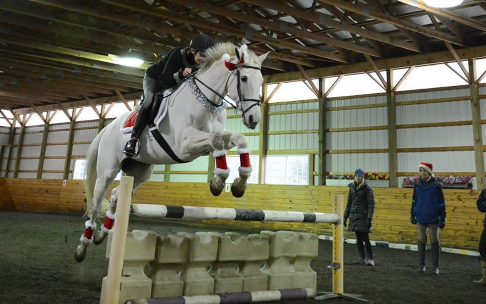 The Saturday before Christmas, we dress ourselves and our horses in costume and play games! Wearing everything from antlers to tiaras, our equine friends compete in the high-jump, musical stalls, a trotting race, apple-on-a-spoon, and other equally silly classes. After the fray, we have hot chocolate and cookies by the fire.